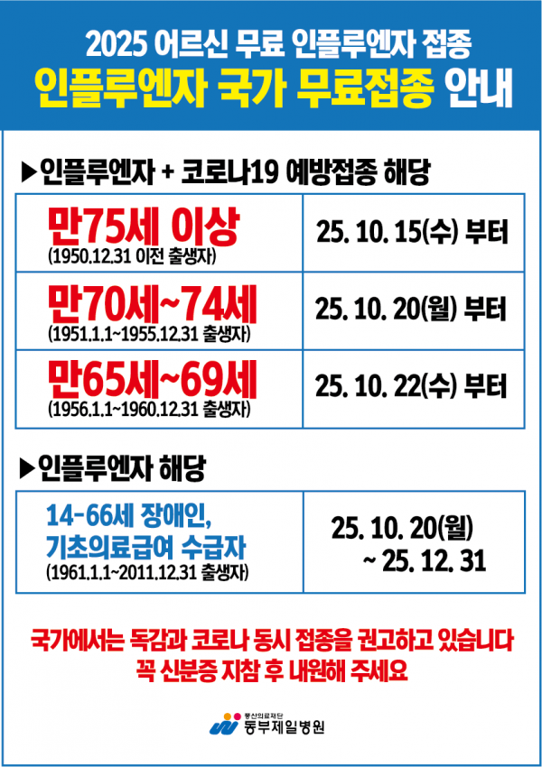 2025년 10월 어르신 무료 인플루엔자 접종 일정안내